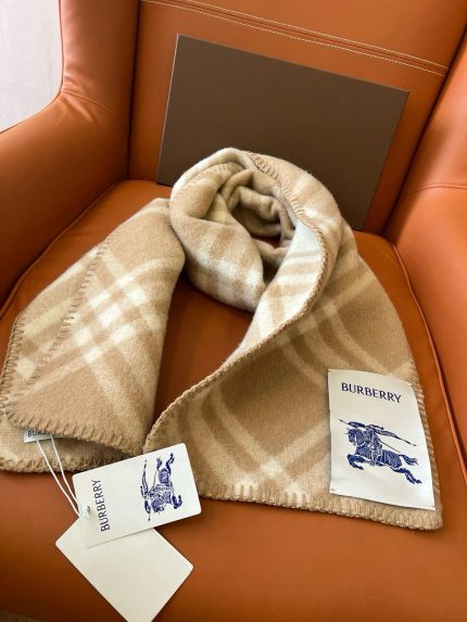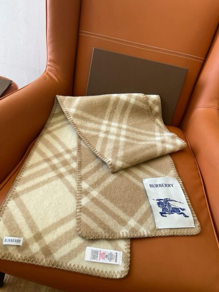 Burberry Beige Check Wool Scarf with Logo Patch
