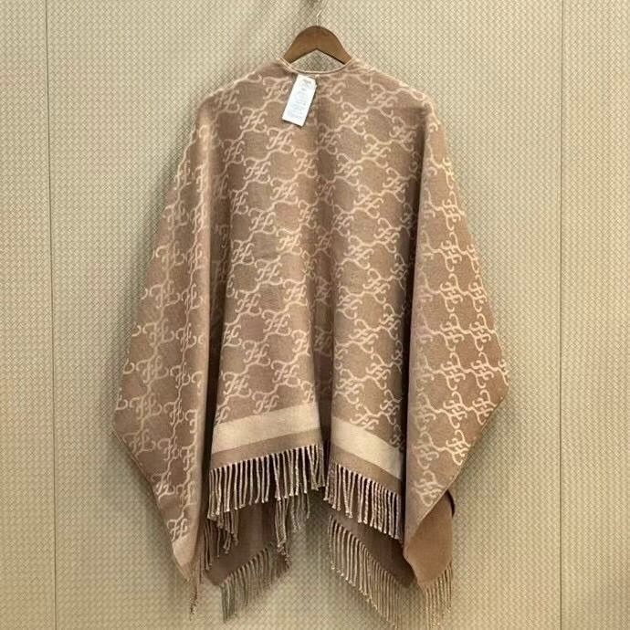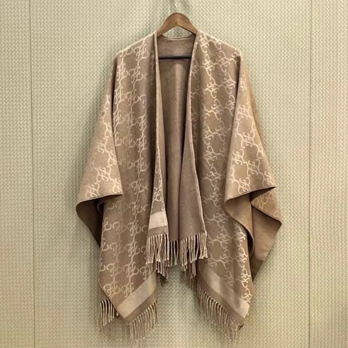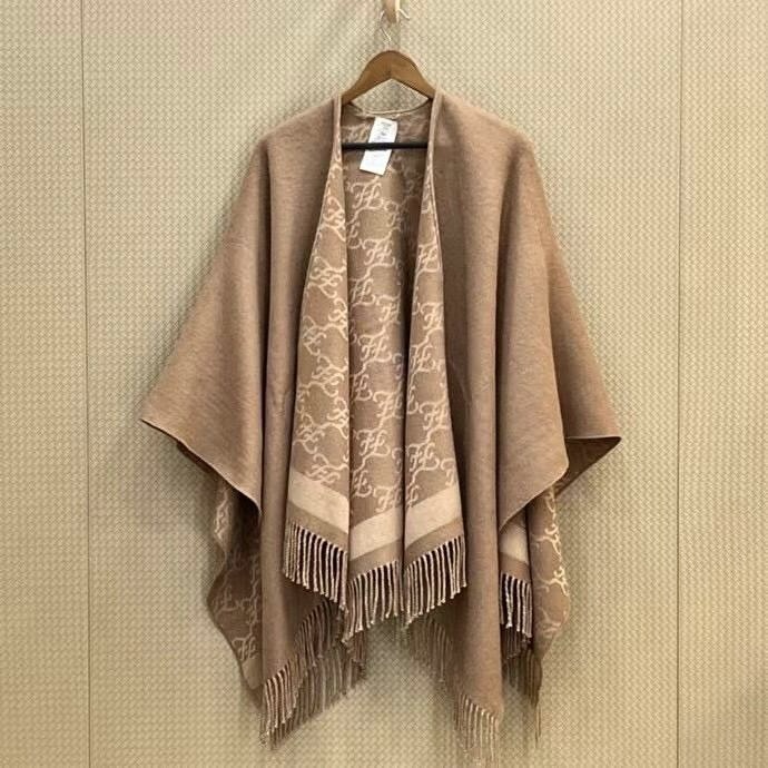 Elevate your wardrobe with the timeless elegance of the Fendi Reversible Shawl. Crafted in a soft beige palette, this luxurious piece features the iconic Fendi monogram woven throughout, showcasing the house’s signature sophistication.