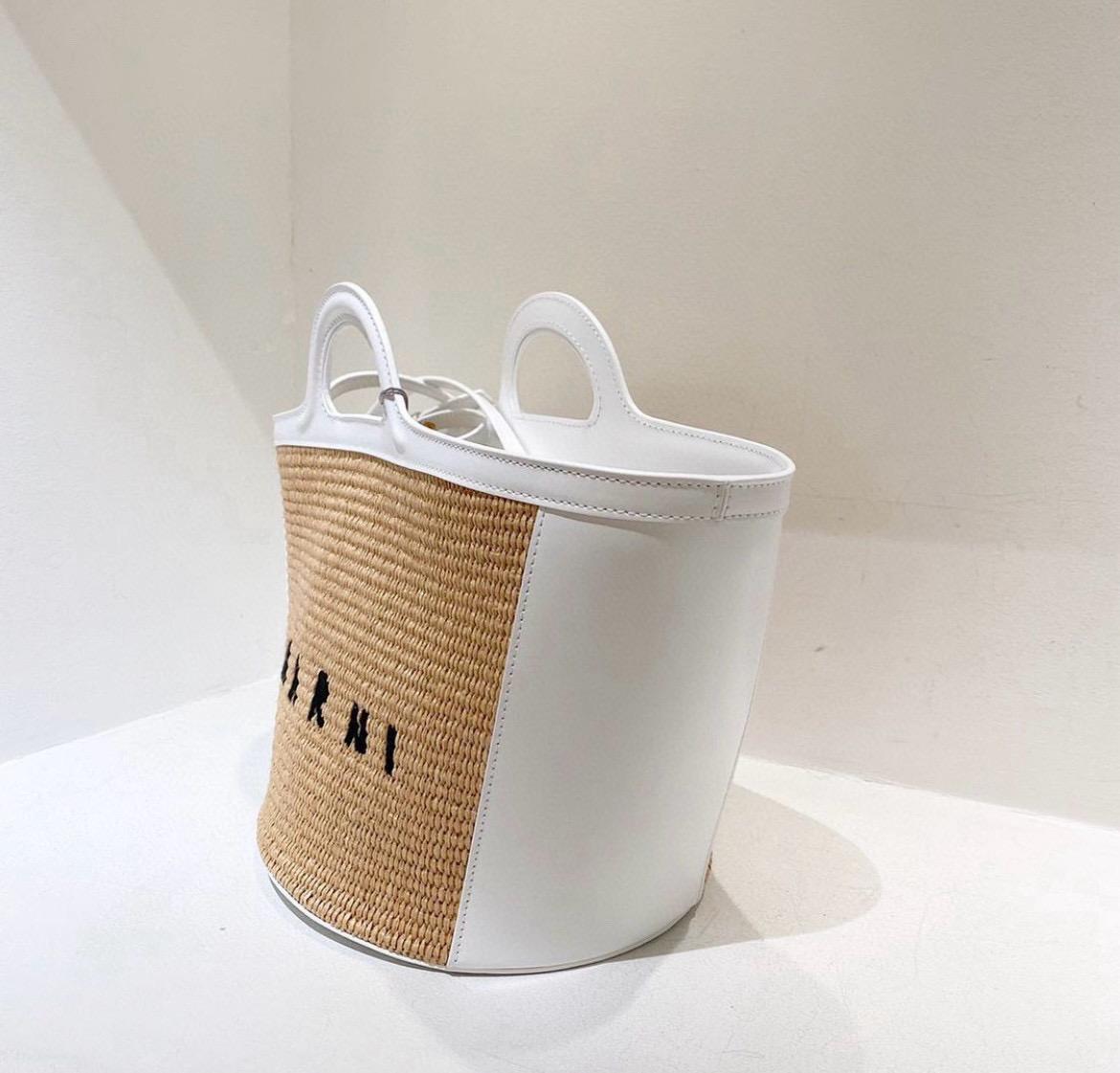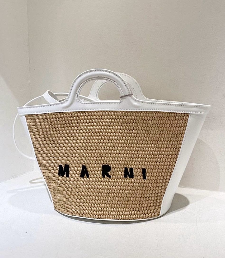 The Marni Raffia Tote Bag combines natural textures with contemporary design. Featuring woven raffia with contrasting leather trim and bold logo embroidery, this spacious tote is perfect for everyday wear or chic summer getaways.
